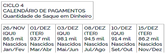 As duas parcelas restantes serão pagas de 16 de novembro a 30 de novembro, com saques liberados de 26 de novembro a 15 de dezembro.