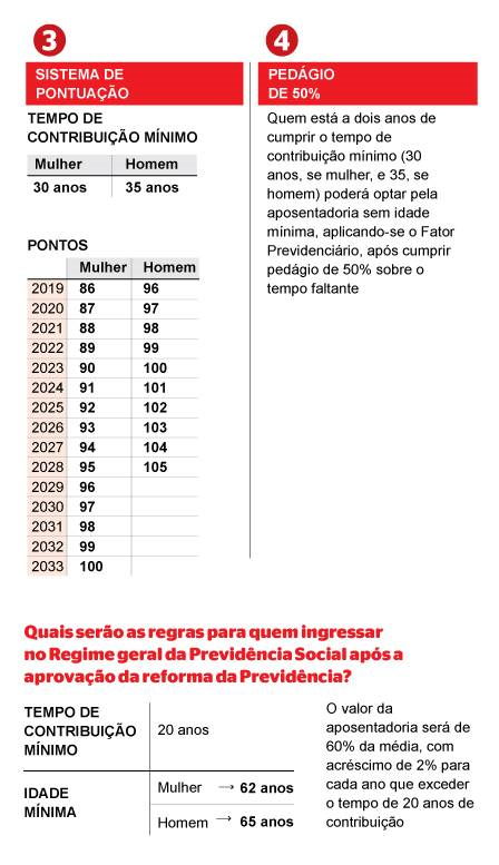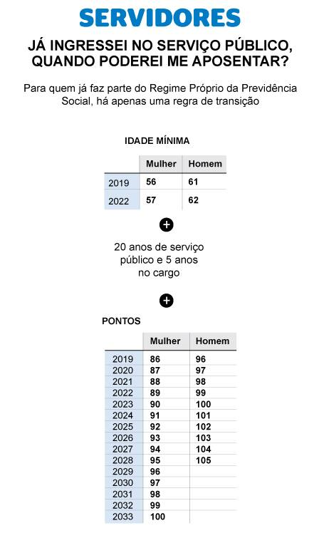 — As regras são muito rígidas. Além da transição, a reforma prevê outras duas mudanças. O cálculo vai considerar a média de todos os salários que a pessoa recebeu durante a vida, enquanto hoje descarta 20% das menores remunerações. E a regra dos pontos (soma da idade com o tempo de contribuição), que hoje garante a integralidade do benefício, vai passar a garantir apenas 60%. A pessoa só terá direito ao total com 40 anos de contribuição. Na questão do serviço público, o que mais preocupa é a questão da integralidade e da paridade, que só será atingida aos 62 anos, para mulheres, e 65 para os homens.